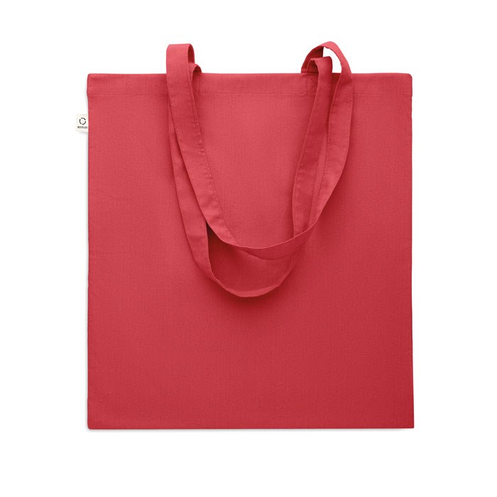 Gerecyclede pre-consumer katoenen boodschappentas (70% gerecycled katoen en 30% RPET) met lange hengsels. 140 gr/m². Dit artikel kan krimpen na het afdrukken.