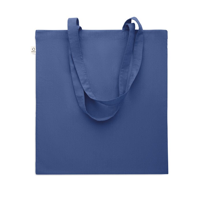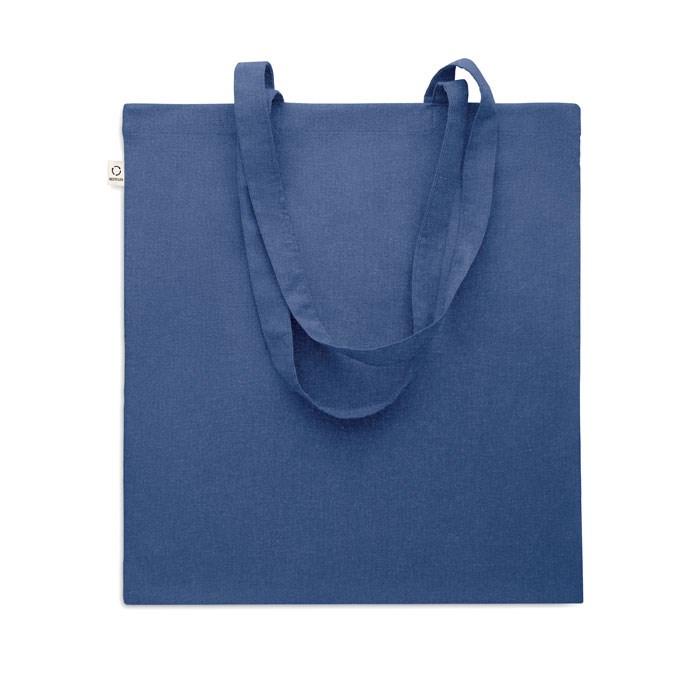 Gerecyclede pre-consumer katoenen boodschappentas (70% gerecycled katoen en 30% RPET) met lange hengsels. 140 gr/m². Dit artikel kan krimpen na het afdrukken.