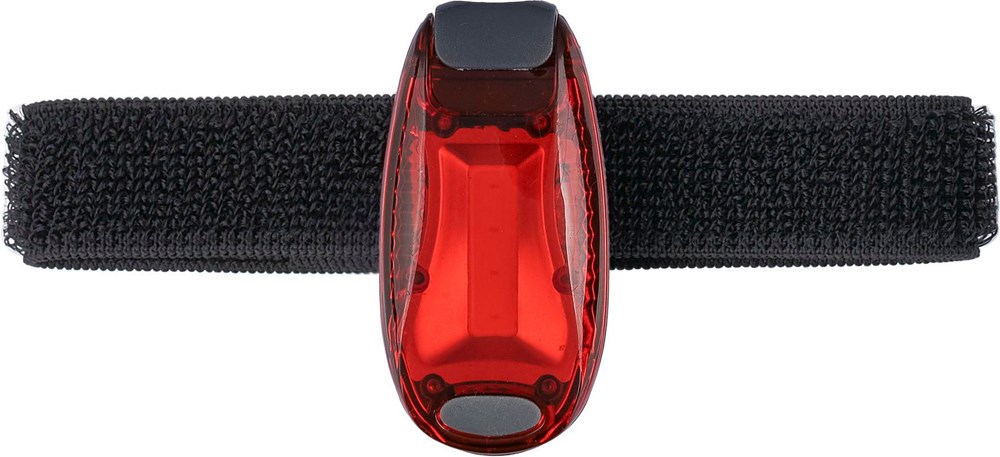 Veiligheidslampje met twee settingen: knipperend en constant. Inclusief klittenband om het lampje te bevestigen.