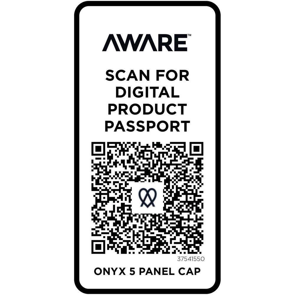 De Onyx 5 panel cap is gemaakt van 70% gerecycled katoen en 30% gerecycled polyester. Hij is ontworpen voor een comfortabele pasvorm met een hoofdomtrek van 58 cm en de metalen gespsluiting zorgt voor eenvoudige, veilige aanpassingen. De cap bevat Cyclo® gerecyclede vezels waarbij voorgesorteerd afval wordt gebruikt dat de kleur van het garen bepaalt. Deze vezels verminderen niet alleen de vraag naar nieuwe grondstoffen, maar tonen ook een engagement voor een circulair leven, waarbij ze de essentie belichamen van het verminderen van afval en het bevorderen van een gesloten kringloopsysteem. Elke cap wordt ook geleverd met een Aware™ tracer. Met deze innovatieve functie kunnen gebruikers de oorsprong en de reis van hun artikel volgen via een QR-code, waardoor de transparantie in de toeleveringsketen wordt vergroot en er een sterkere band is tussen het product en het productieproces.
