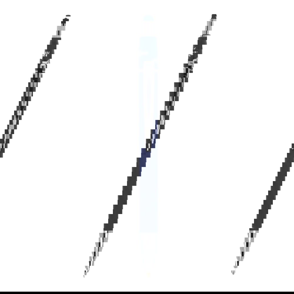Aluminium spinner balpen met metalen clip en blauw schrijvende jumbo vulling.